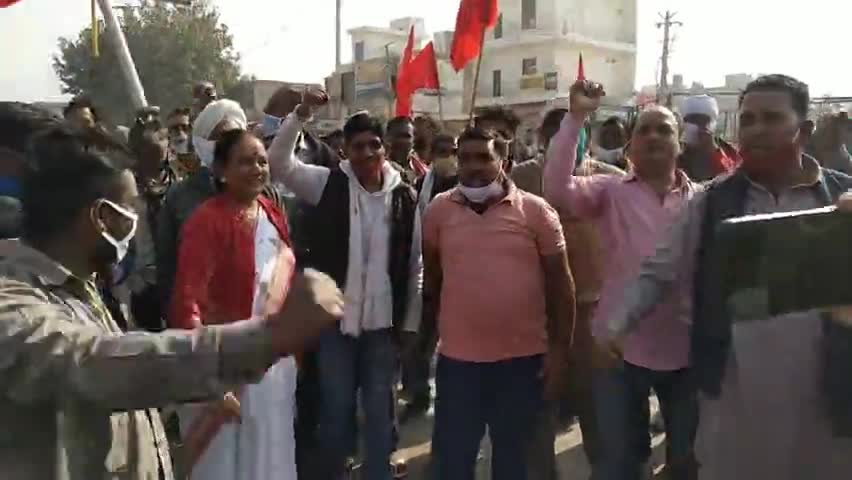 गंगानगर: ग्राम पंचायत 4 एमएल के किसान चौक पर किसानों-मजदूरों ने दिया धरना