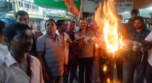भाजयुमो झुमरी तिलैया मण्डल की ओर से हेमन्त सोरेन का पुतला दहन किया गया