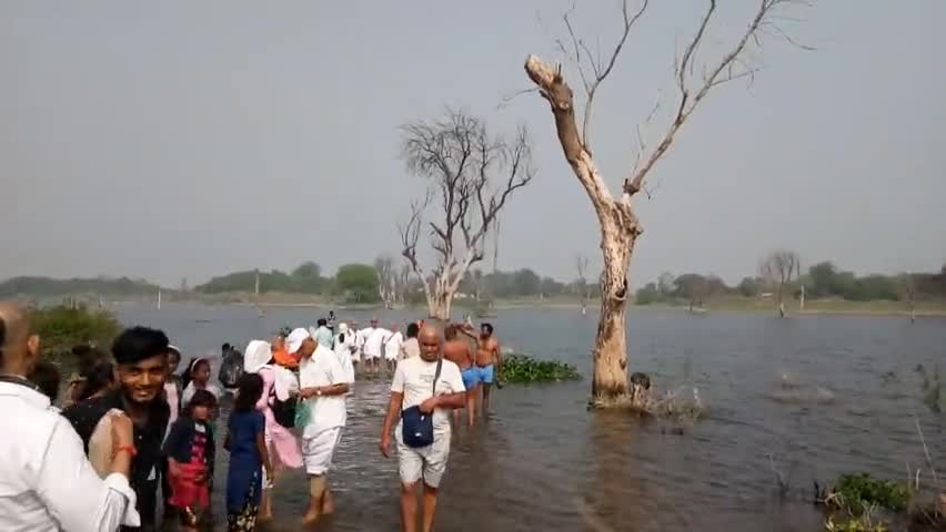 ग्राम राजघाट में आज परिक्रमा वासी द्वारा बस से यात्रा की जा रही है बड़ी संख्या में भक्तों ने स्नान कर दान पूजा अर्चना