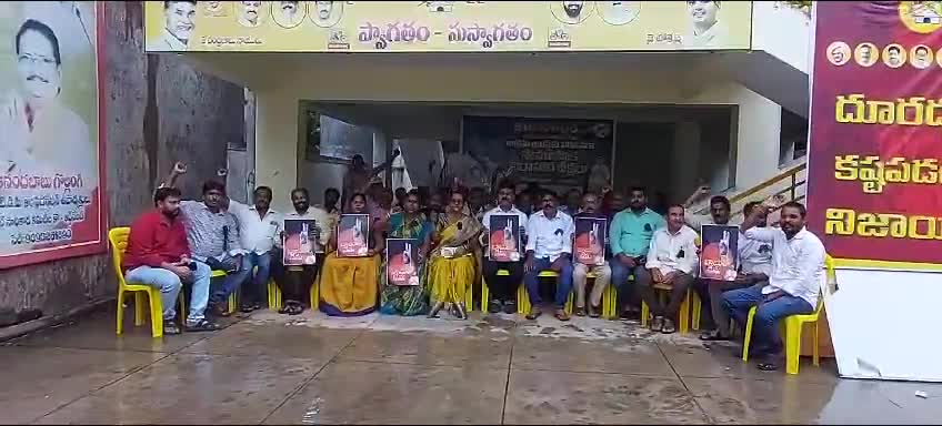 భీమిలి: TDP పట్టణ ఆఫీస్లో నిరాహార దీక్ష చేపట్టిన పార్టీ నేతలు, బాబుతో నేను పోస్టర్ను ప్రదర్శించిన నియోజకవర్గ ఇంచార్జ్ రాజబాబు