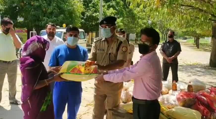 # लॉक डाउन के कारण प्रभावित हुए गरीब एवं मजदूर व्यक्तियों को खाद्य पैकेट वितरित करते हुए एसडीएम सैफई