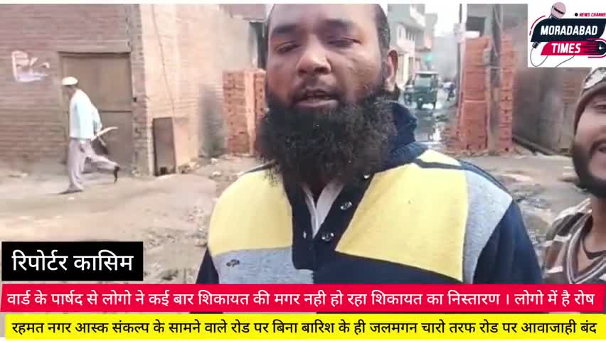 मुरादाबाद: रहमत नगर आस्क संकल्प स्कूल के सामने वाली सड़क पर बिना बारिश के जलमग्न जैसे हालात ।