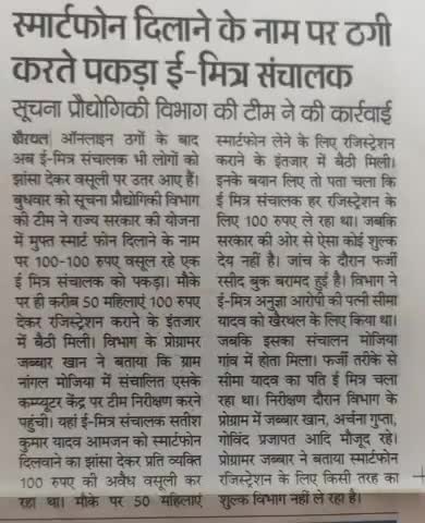 स्मार्टफोन दिलाने के नाम पर ठगी करता पकड़ा गया ई मित्र संचालक #भरतपुर @भरतपुर