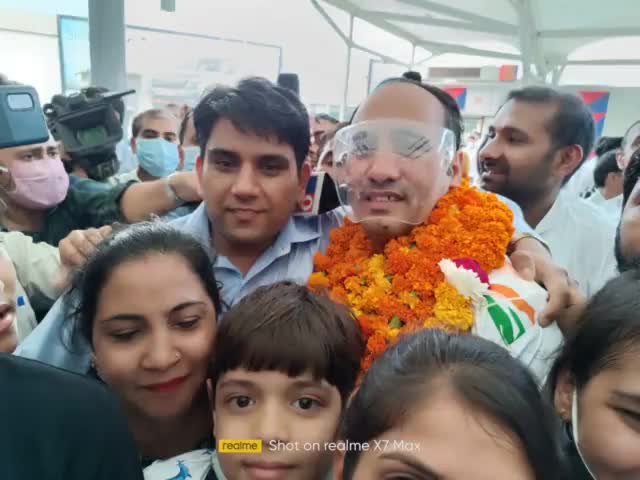 #Tokyoparalympics2020 में विश्वविजेता बनें मित्र #सिंहराज_अधाना को एयरपोर्ट पर मिलकर बधाई दी। इस स्वागत में खुद के लिए तालियां कम और बार-बार "भारत माता की जय" के नारे सुनाई पड़ रहे थे। क्योंकि सिंहराज की गर्जना थी। आपका अभिनंदन है, मित्र।