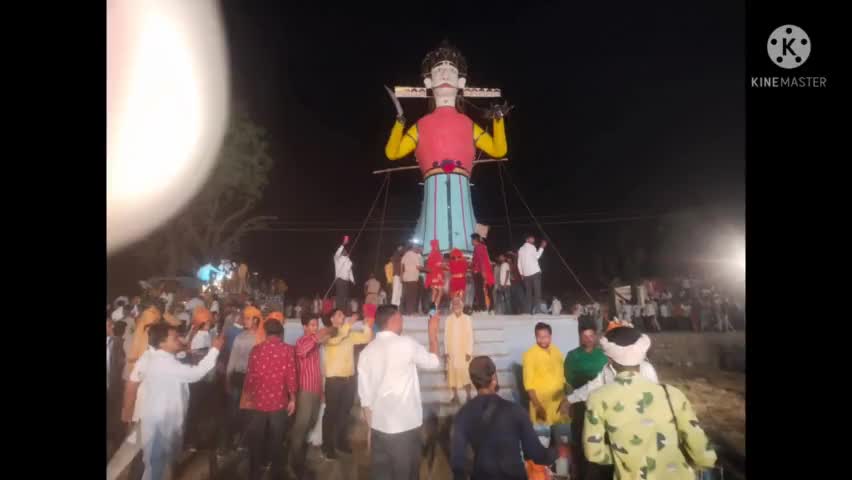 पीपल्दा :- आज पीपल्दा में हुआ35 फुट रावण का दहन। हजारों ग्रामवासि आए रावण दहन को देखने।