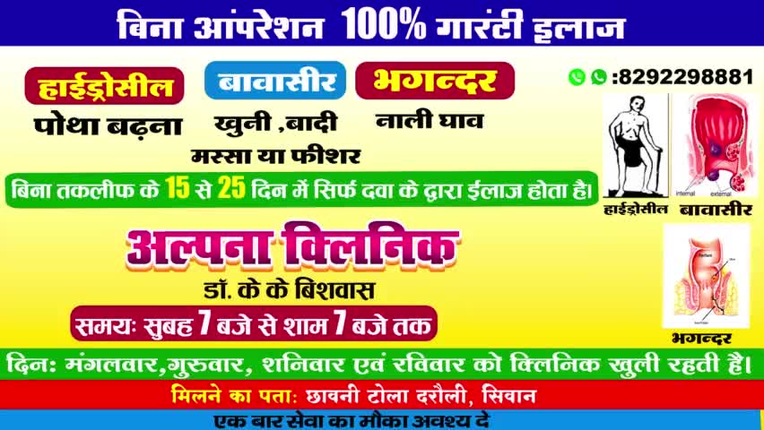 बिना चीरफाड़ गारंटी इलाज।हाईड्रोसील,बावासीर,भगन्दर पोथा बढ़ना ,खुनी,बादी मस्सा ,नाली घाव स्थान: दरौली।