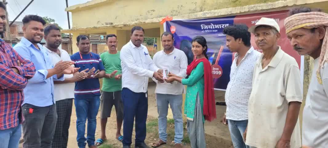 सुकुरहुटू में सबसे सस्ता जिओ फोन का प्रारंभ करते हुए मुखिया राम लखन मुंडा जी के साथ