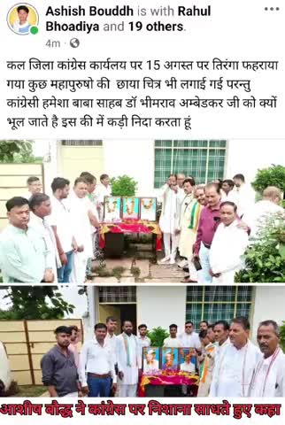 आशीष बौद्ध कांग्रेस पार्टी पर तंज कसते हुए 15 अगस्त को कांग्रेस कार्यलय पर डॉ भीमराव कि तस्वीर न रखने पर हुऐ नाराज़