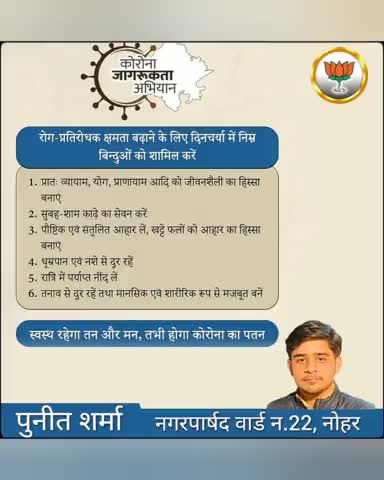 ЁЯЩВрд╕реНрд╡рд╕реНрде рд░рд╣реЗрдЧрд╛ рддрди рдФрд░ рдорди, рддрднреА рд╣реЛрдЧрд╛ рдХреЛрд░реЛрдирд╛ рдХрд╛ рдкрддрди ЁЯСНЁЯП╗ рдХреЛрд░реЛрдирд╛ *рдЬрд╛рдЧрд░реВрдХрддрд╛* рдЕрднрд┐рдпрд╛рди