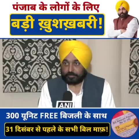पंजाब के लोगों के लिए बड़ी ख़ुशख़बरी‼️ 💡पंजाब में आज से हर महीने 300 यूनिट बिजली Free!