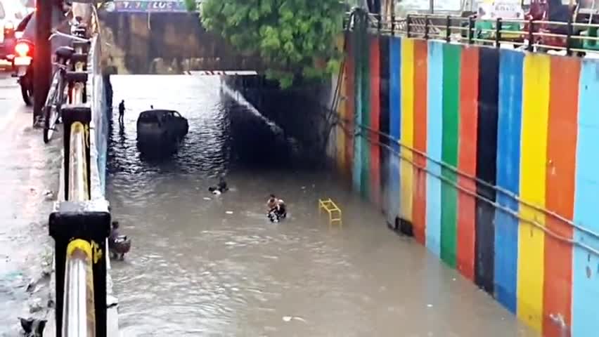 मैनपुरी फाटक के अंडर ब्रिज में बारिश के पानी में फंस गई कार, बाइक के साइलेंसर में भरा पानी लोग हुए परेशान।
