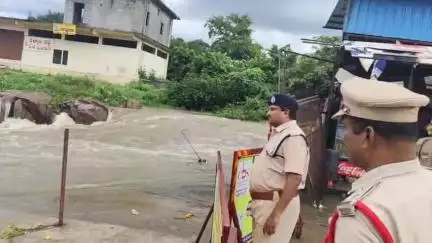 వన దుర్గ మాత ఆలయం వద్ద వరద ప్రవాహాని పరిశీలించిన : మెదక్ జిల్లా ఎస్పీ గారు
