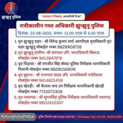 रात्रीकालीन गश्त अधिकारी झुन्झुनू पुलिस #JhunjhunuPolice