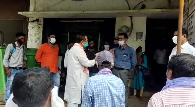 वाड्रफनगर में बैंक के सामने क्षेत्रवासियों की भीड़ को देख बैंक अधिकारियों को सोशल डिस्टेनस का पालन कराने हेतु निर्देश दिए