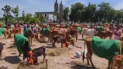 விழுப்புரம் திண்டிவனம் அருகேயுள்ள ஓமந்தூரில் செயல்பட்டு வரும் தனியார் பள்ளியில் ஸ்ரீராம் அறக்கட்டளை சார்பில் இன்று காலை 11 மணியளவில் பிரதமர் மோடியின் 75 வது பிறந்த நாளை முன்னிட்டு 1008 பசுக்களை கொண்டு பூஜை மற்றும் 75 ஏழை எளிய மக்களுக்கு இலவசமாக பசு வழங்கப்பட்டது. இந்நிகழ்ச்சியில் அதிமுக மாநிலங்களவை உறுப்பினர் சிவி சண்முகம் பங்கேற்று நலத்திட்ட உதவிகளை வழங்கின