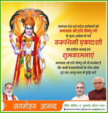 भगवान श्री हरि विष्णु जी की पूजा-अर्चना के पावन पर्व वरूथिनी एकादशी की समस्त प्रदेश वासियों को हार्दिक शुभकामनाएं।