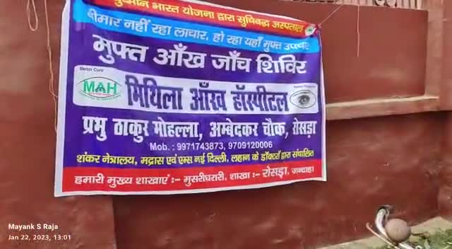 फ्री खाना देने का भ्रामक प्रचार कर गरीबों के साथ जालसाजी करने पर "मिथिला आँख हॉस्पिटल" रोसड़ा के फर्जी डॉक्टर को सिंघिया