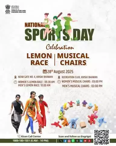 MoA&FW to celebrate National Sports Day on 28 Aug at Krishi Bhawan with fun events, honoring sports & teamwork. #NSD2025