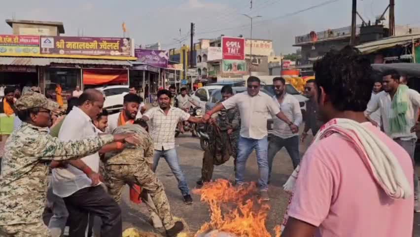 दंतेवाड़ा: अमर्यादित बयानबाज़ी को लेकर दंतेवाड़ा बस स्टैंड पर भाजपा युवा मोर्चा ने आबकारी मंत्री कवासी लखमा का फूंका पुतला