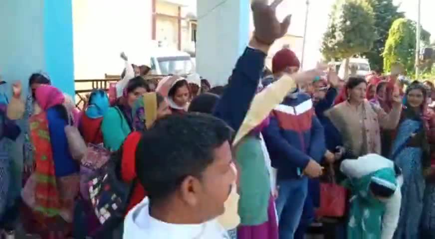 पोखरी: जि.पं अध्यक्षा चमोली व श्री राजेंद्र भंडारी जी ने आज आंगनबाड़ी सेविकाओं के धरना प्रदर्शन पोखरी में समर्थन देने पहुंचे