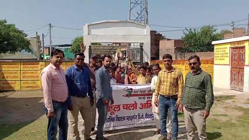 बीसलपुर: ग्राम पहाड़गंज में प्राथमिक विद्यालय में स्कूल चलो अभियान के तहत छात्र-छात्राओं ने निकाली जागरूकता रैली