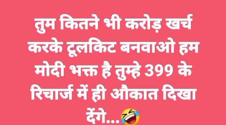 तुम कितने भी करोड़ खर्च करके टूलकिट बनवाओ हम मोदी भक्त है तुम्हे 399 के रिचार्ज में ही औकात दिखा देंगे...🤣 जय श्री राम ⛳