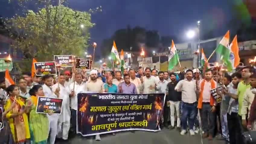पहलगाम आतंकी हमले के विरोध में मशाल पदयात्रा एवं कैंडल मार्च" 22अप्रैल को कश्मीर के प्रसिद्ध पर्यटन स्थल पहलगाम में हुए कायराना आतंकी हमले के विरोध में आज भारतीय जनता पार्टी महानगर फिरो. द्वारा मशाल पदयात्रा एवं कैंडल मार्च निकाली गई।