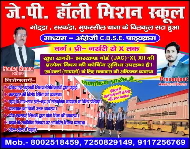 J.P Holy Mission School 🏫 Sarkanda Godda, नए सत्र के लिए नामांकन जारी है बच्चों के लिए छात्रावास की सुविधा उपलब्ध है