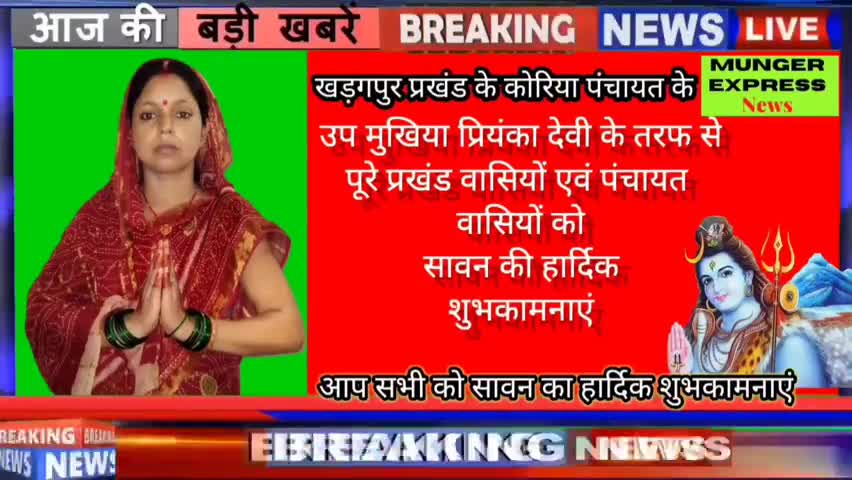 खड़गपुर: #खड़गपुर प्रखंड के कोरिया पंचायत उप मुखिया प्रियंका देवी की तरफ से पूरे प्रखंड वासियों को सावन की हार्दिक शुभकामनाएं
