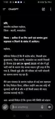 #ग्राम पंचायत कुम्हारवारा विकास खण्ड बड़वारा के कुम्हारवारा गांव में बारिश से घर गिर गया संतोष कोल ने बताया l