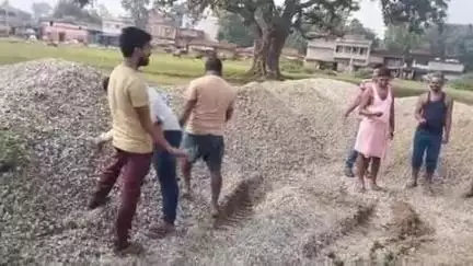जामू पंचायत के बिन्डा रोड मे गिट्टी के जगह स्टोन चिप्स डाला जा रहा है।