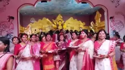 किरंदुल के स्थित शारदीय दुर्गा पूजा बंगीय कल्चरल एसोसिएशन द्वारा माता दुर्गा की विदाई से पूर्व विजयादशमी के दिन गुरुवार दोपहर 1:00 बजे को सिंदूर खेला।बंगीय समाज की महिलाओं का मानना है की माँ दुर्गा को सिंदूर लगाने के पश्चात उसी सिंदूर को महिलायें लगाने से पति की आयु दीर्घ होती है इसलिए सभी एक दूसरे को सिंदूर लगाकर अपने पति की लंबी आयु के लिए माँ दुर्गा से प