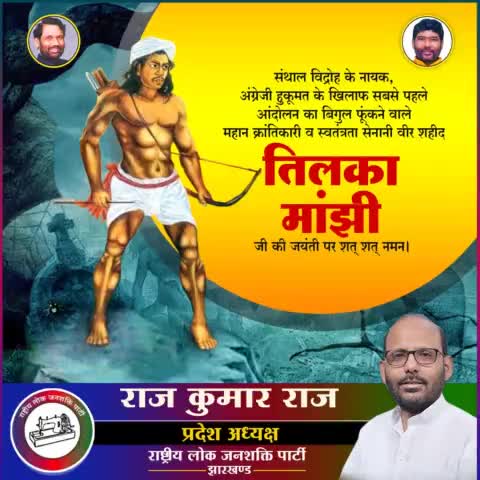 अंग्रेज़ी हुकूमत के खिलाफ क्रांति का बिगुल फूंकने वाले महान क्रांतिकारी बाबा तिलका मांझी जी की जयंती पर कोटि कोटि नमन।