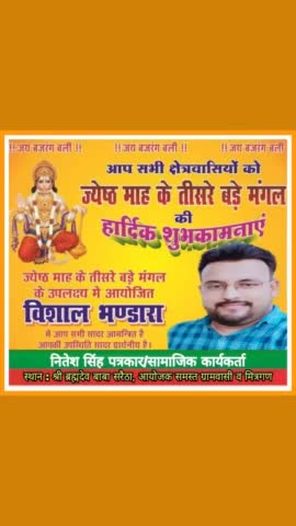 आप सभी प्रिय मित्रों व भक्तों का आज भव्य भंडारे में प्रसाद ग्रहण करने हेतु हार्दिक स्वागत वंदन व अभिनंदन है। निवेदक : समस्त युवा साथी ग्रामसभा सरैठा