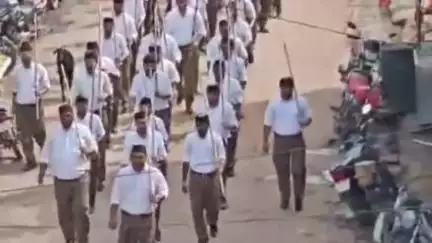 खालवा: शताब्दी वर्ष पर स्वयं सेवक संघ ने निकाला पथ संचलन