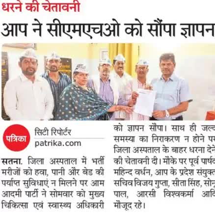 आम आदमी पार्टी ने जिला चिकित्सालय में बिगड़ी स्वास्थ्य व्यवस्था को लेकर सौंपा ज्ञापन दी धरने की चेतावनी