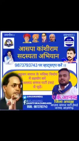बहुजन समाज के भविष्य निर्माण में सहयोग करें #आज़ाद_समाज_पार्टी_कांशीराम से जुड़ें। जयभीम जयभारत।।