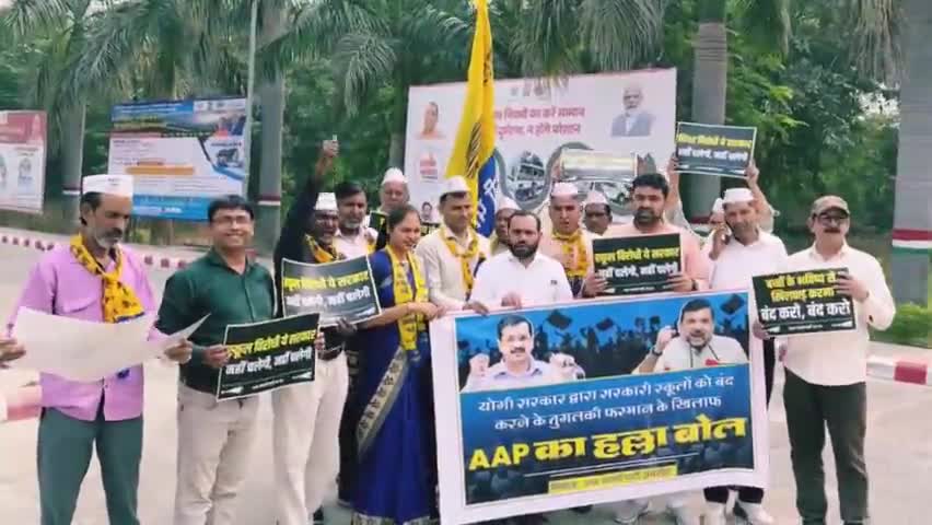 आम आदमी पार्टी अमरोहा ने योगी सरकार के सरकारी स्कूल बंद करने के फैसले के खिलाफ किया विरोध प्रदर्शन सौंपा ज्ञापन शिक्षा विरोधी योगी सरकार