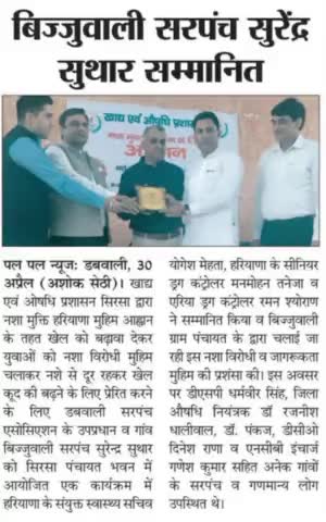 बिज्जुवाली ग्राम पंचायत को इस मान सम्मान देने के लिए हरियाणा सरकार व जिला प्रशासन का हार्दिक आभार... @surendersuthar