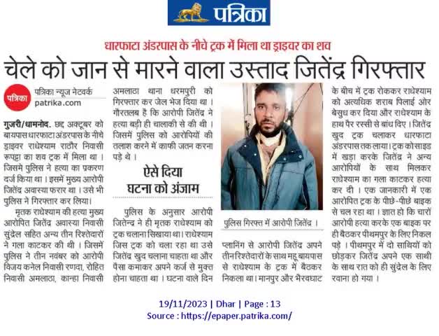 गुजरी साथी ड्रायवर को मारने वाला धराया