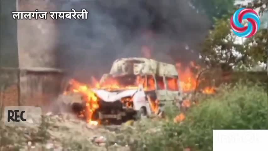 लालगंज सामुदायिक स्वास्थ्य केंद्र में पुरानी पड़ी चार एंबुलेंस मे लगी आग।