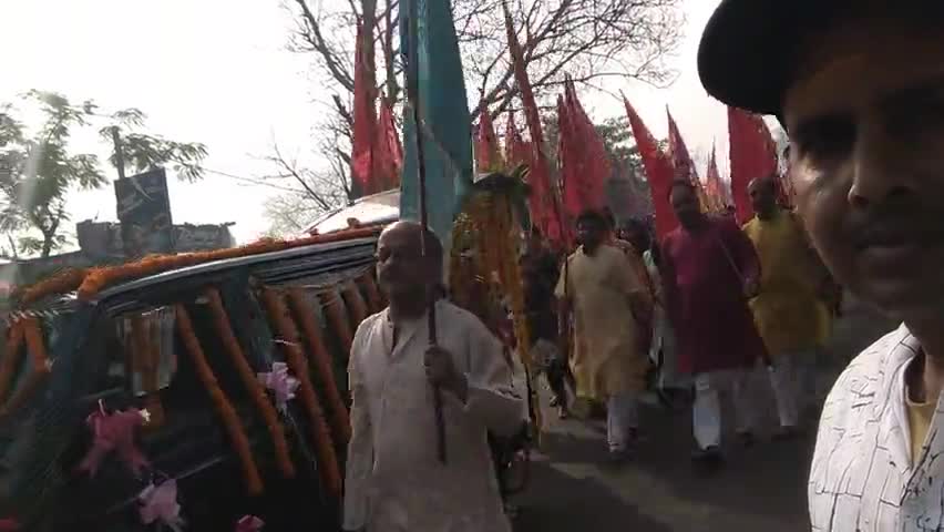 झरिया/जोरापोखर/सिंदरी: श्री श्याम सेवा समिति सिंदरी गौशाला दुर्गा मंदिर के प्रांगण से भव्य श्याम निशान अष्टम शोभा यात्रा झरिया धाम के लिए रवाना