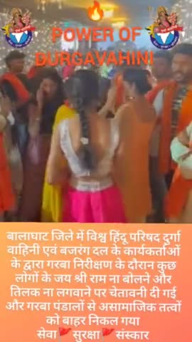 ЁЯФеPOWER OF DURGAVAHINI рдмрд╛рд▓рд╛рдШрд╛рдЯ рдЬрд┐рд▓реЗ рдореЗрдВ рд╡рд┐рд╣рд┐рдк рджреБрд░реНрдЧрд╛рд╡рд╛рд╣рд┐рдиреА рдПрд╡рдВ рдмрдЬрд░рдВрдЧрджрд▓ рдХреЗ рдХрд╛рд░реНрдпрдХрд░реНрддрд╛рдУрдВ рджреНрд╡рд╛рд░рд╛ рдЧрд░рдмрд╛ рдирд┐рд░реАрдХреНрд╖рдг рдХреЗ рджреМрд░рд╛рди рдХреБрдЫ рд▓реЛрдЧреЛрдВ рдХреЗ рдЬрдп рд╢реНрд░реА рд░рд╛рдо рдирд╛ рдмреЛрд▓рдиреЗ рдФрд░ рддрд┐рд▓рдХ рдирд╛ рд▓рдЧрд╡рд╛рдиреЗ рдкрд░ рдЪреЗрддрд╛рд╡рдиреА рджреА рдЧрдИ рдФрд░ рдЧрд░рдмрд╛ рдкрдВрдбрд╛рд▓реЛрдВ рд╕реЗ рдЕрд╕рд╛рдорд╛рдЬрд┐рдХ рддрддреНрд╡реЛрдВ рдХреЛ рдмрд╛рд╣рд░ рдирд┐рдХрд╛рд▓рд╛ рдЧрдпрд╛