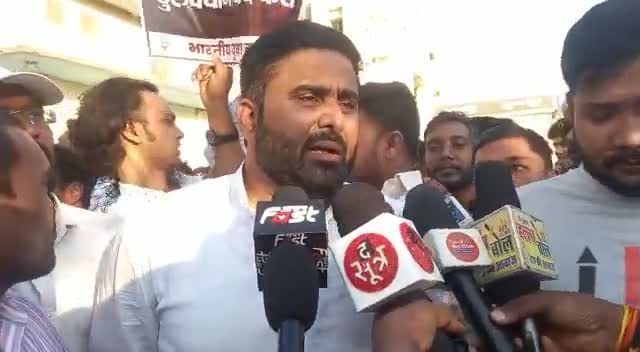 युवा कांग्रेस के प्रदेश अध्यक्ष आकाश शर्मा ईडी दफ्तर के सामने पत्रकारों को संबोधित करते हुए।।
