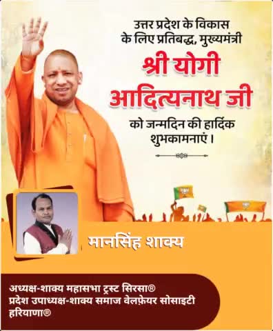 उत्तर प्रदेश के विकास के लिए प्रतिबद्ध,हर दिल अजीज माननीय मुख्यमंत्री श्री योगी आदित्यनाथ जी को जन्म दिन पर शाक्य समाज वेलफ़ेयर सोसाइटी हरियाणा® की तरफ हार्दिक बधाई व शुभकामनाएं।