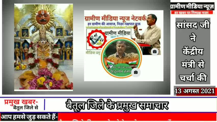 13 अगस्त 2021 बैतूल जिले के समाचार ग्रामीण मीडिया नेट वर्क मुलताई से
