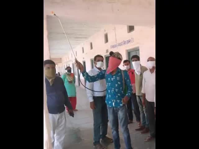 देसूरी: मोरखा ग्राम पंचायत में कोरोना वायरस की रोकथाम को लेकर पंचायत द्वारा करवाया गया दवाई का छिड़काव