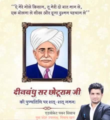 किसानो मे आत्मविश्वास व चेतना जगाने वाले धर्म निरपेक्ष भारतीयता के प्रतीक दीनबंधु सर छोटूराम जी की पुण्यतिथि पर शत्-शत् नमन 🙏🙏🙏