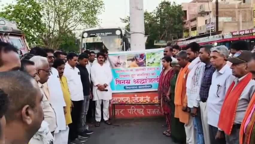 कालापीपल के पंचमुखी चौराहे पर भाजपा कार्यकर्ताओं ने जम्मू-कश्मीर के पहलगाम में आतंकवादियों द्वारा निर्दोष लोगों की हत्या की घटना के विरोध में मृतकों को श्रद्धांजलि अर्पित की। इस दौरान विधायक घनश्याम चंद्रवंशी सहित भाजपा के कार्यकर्ता और पदाधिकारी मौजूद थे।विधायक घनश्याम चंद्रवंशी ने कहा कि पहलगाम की घटना निंदनीय है आतंकवादियों को बक्सा नहीं जाएगा।