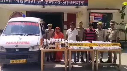 त्यौहारों में जहर घोलने की साजिश रच रहे शराब माफियाओं की कमर तोड़ने में जहानागंज पुलिस ने करारा प्रहार किया है जहानागंज पुलिस और एस्कॉर्ट टीम की संयुक्त कार्रवाई में तीन अंतरराज्यीय शराब तस्कर दो पुरुष एक महिला किशन कुमार सीतामढ़ी,वरुण कुमार साहनी वैशाली, विभा देवी मुजफ्फरपुर बिहार को किया गिरफ्तार 235 बोतले,एंबुलेंस, फर्जी नंबर प्लेट, फास्ट ट्रैग बरामद